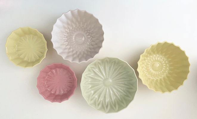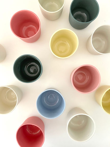 Sie sind aus eingefärbtem französischem Limoges Porzellan gegossen, innen glasiert und haben